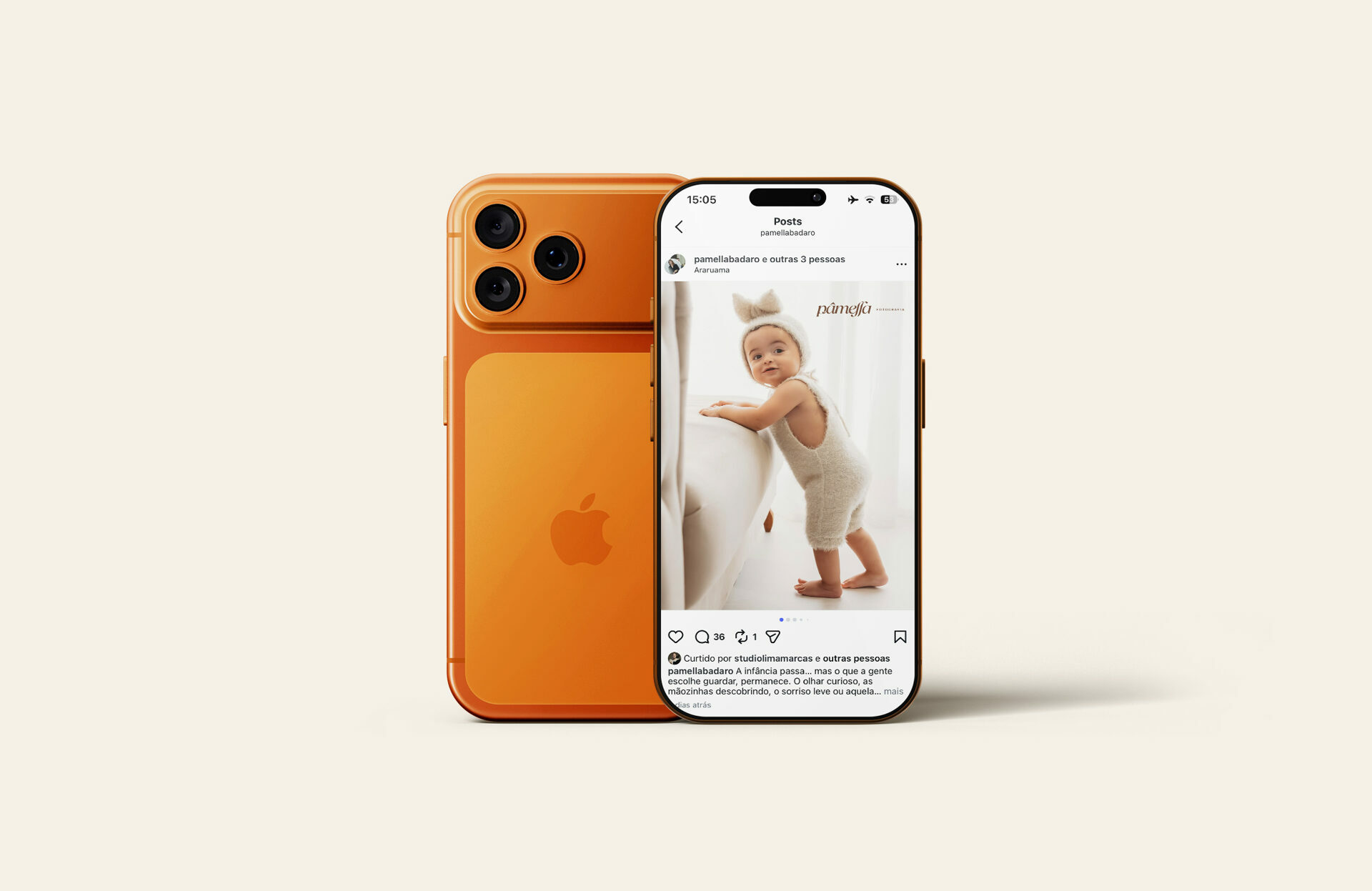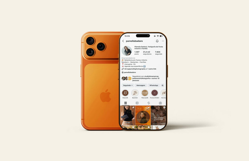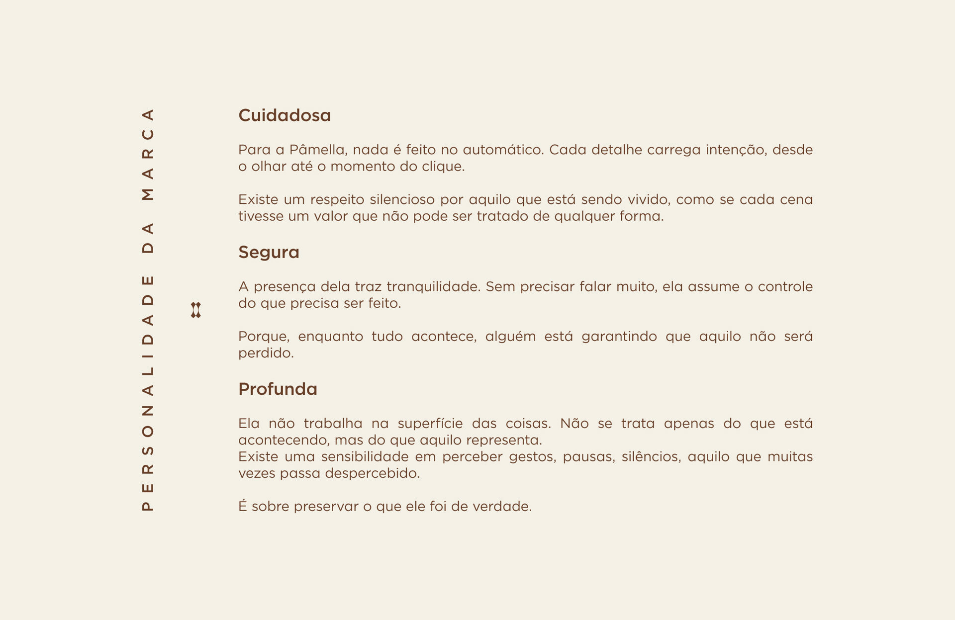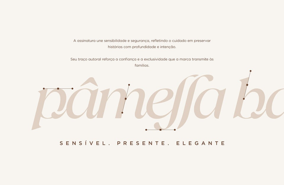 A marca foi desenvolvida para refletir o olhar único e a sensibilidade artística da profissional, transmitindo elegância, confiança e personalidade na fotografia.